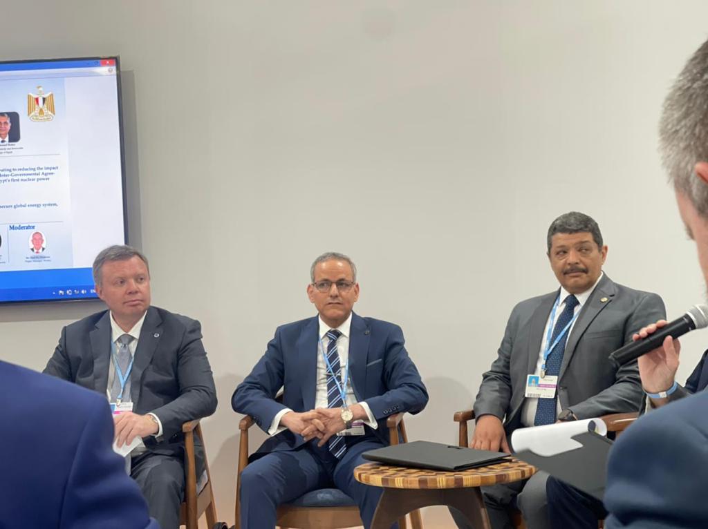 In a speech on the sidelines of participation in the COP 27 Climate Conference, in the presence of H.E. Dr. Mohamed Shaker Al-Marqabi, Minister of Electricity and Renewable Energy and senior representatives of international bodies and government representatives, H.E Prof. Dr. Sami Shaaban, Chairman of the Nuclear and Radiological Regulatory Authority, confirms: